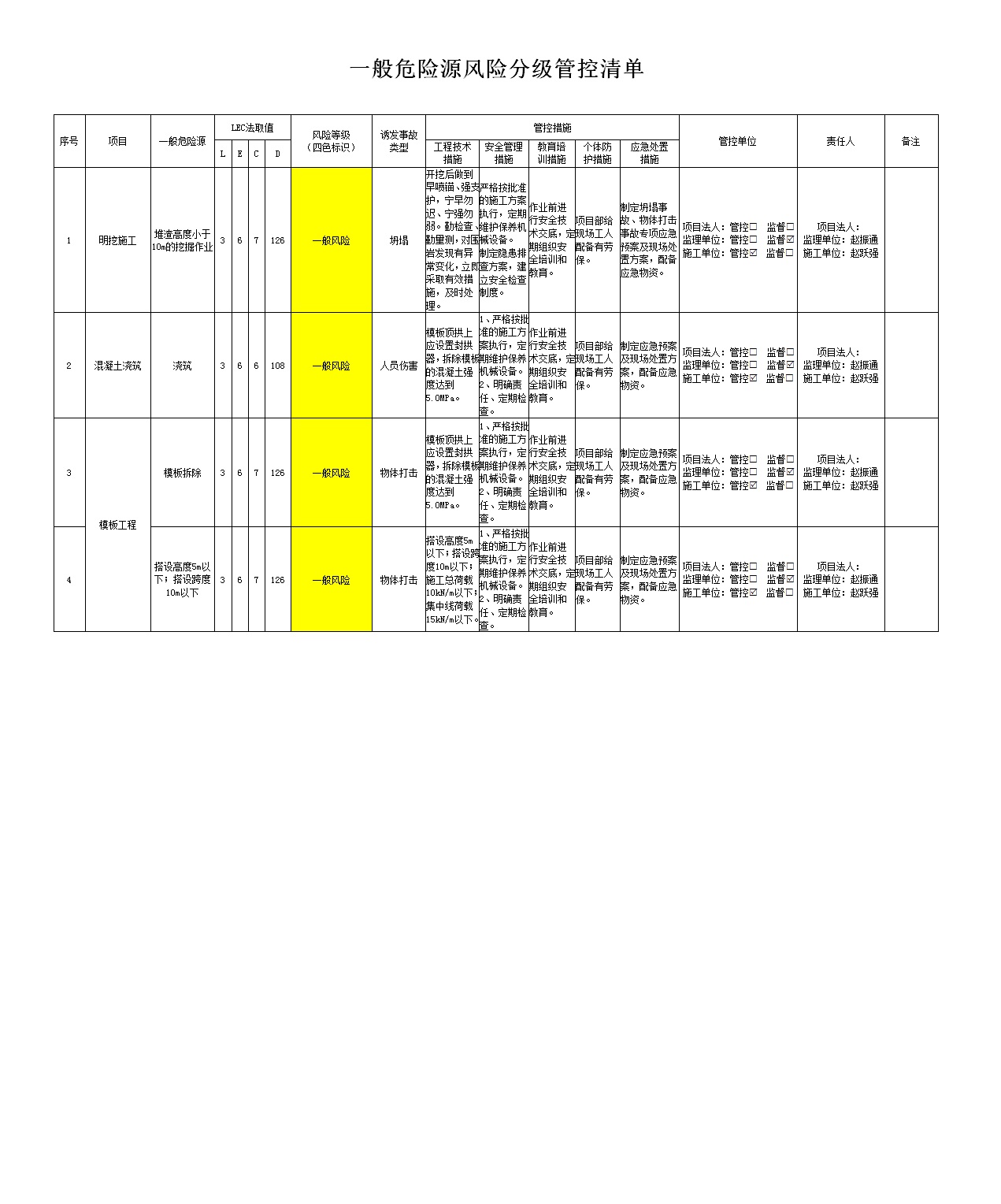 2024年二季度在建項(xiàng)目安全風(fēng)險分級管控清單(小浪底南岸灌區(qū)工程施工7標(biāo))