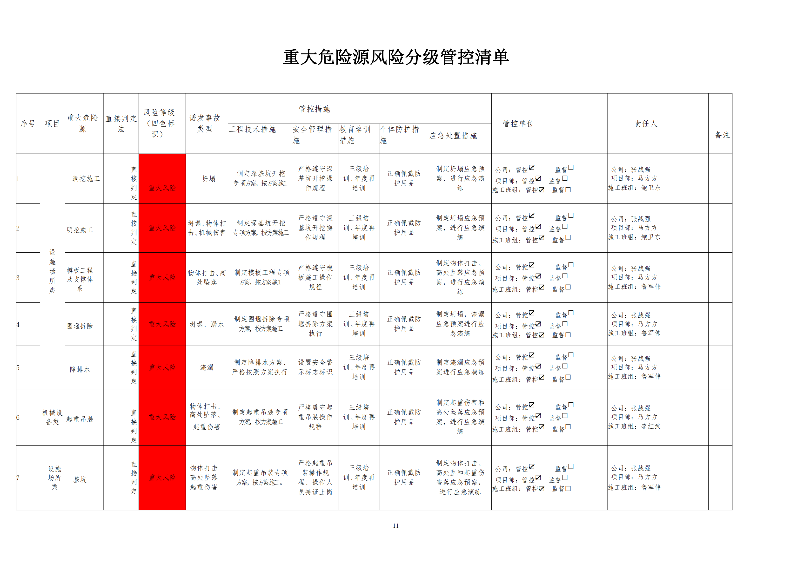 欒川縣新建水庫一期工程施工一標段危險源風險分級管控清單(9月)