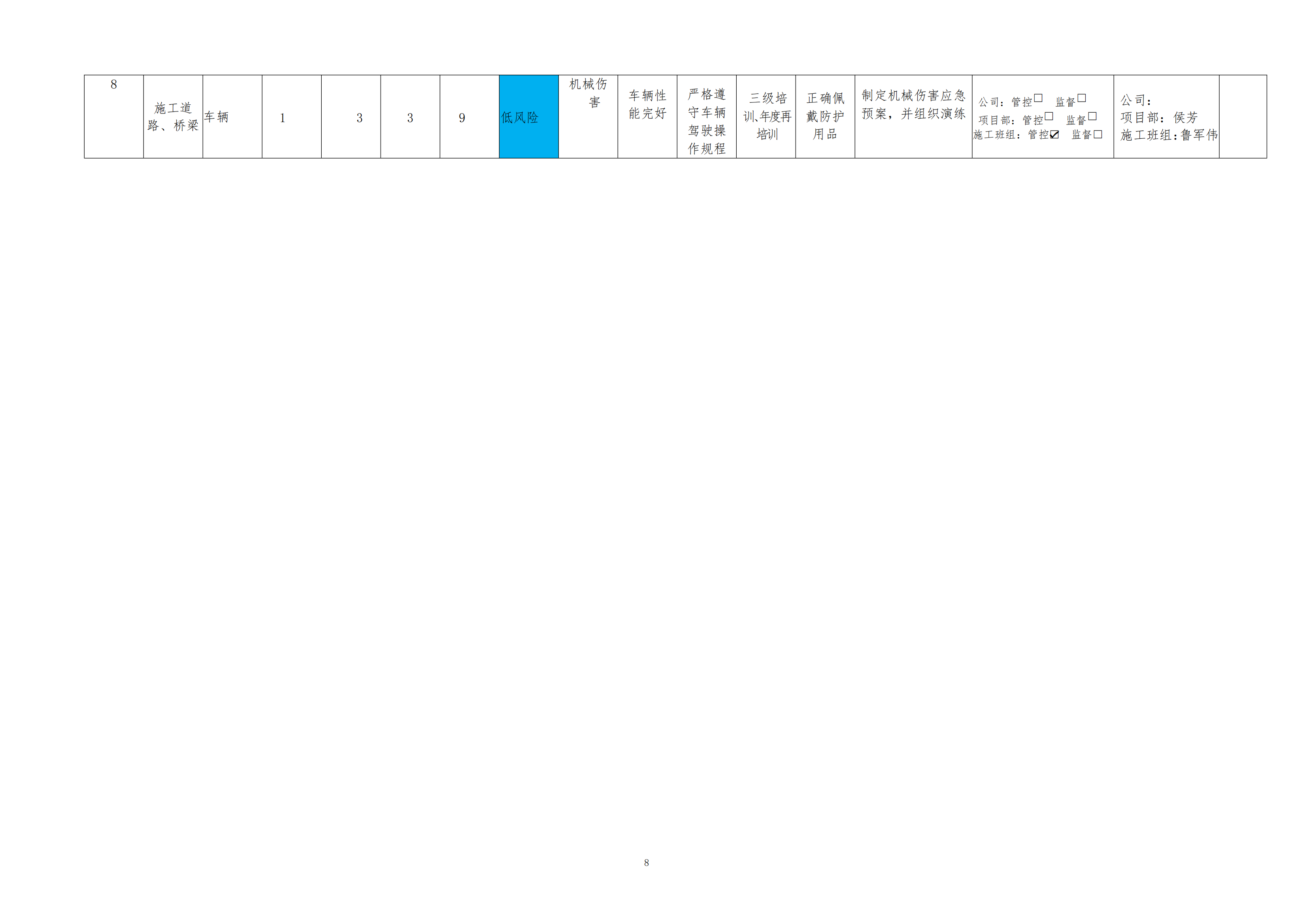 欒川縣新建水庫(kù)一期工程施工一標(biāo)段危險(xiǎn)源風(fēng)險(xiǎn)分級(jí)管控清單(10月)