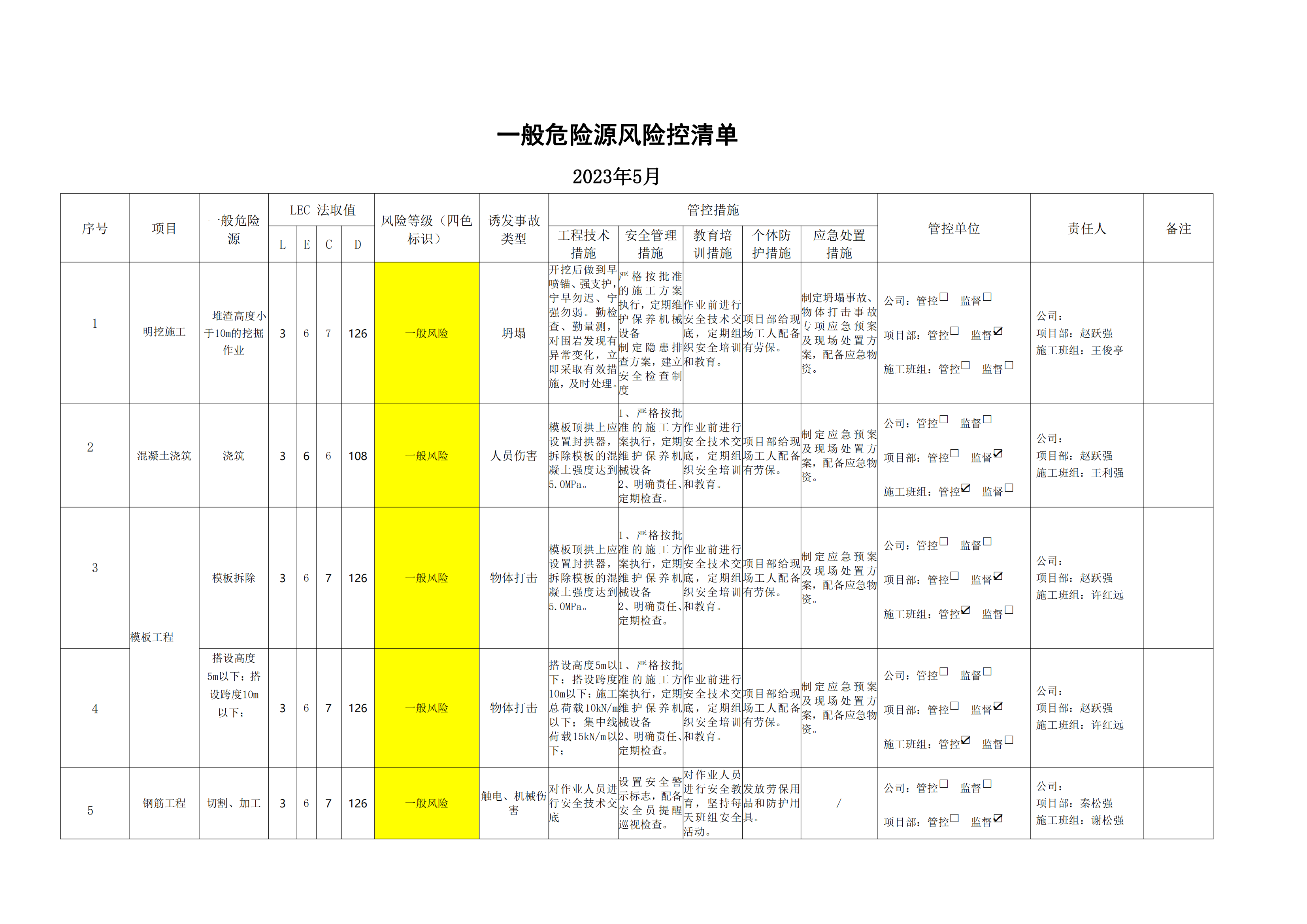 小浪底南岸灌區(qū)7標項目危險源風險分級管控清單(5月)